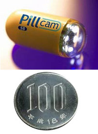 カプセルは重さ3グラムで、カメラ、発信機、電池を内蔵しています。飲み込むと、自然に腸の動きで小腸まで達します。自動的に腸内を撮影し、そのデーターを腰に装着された機械に送って記録します。病院には記録装置だけを返却していただきます。