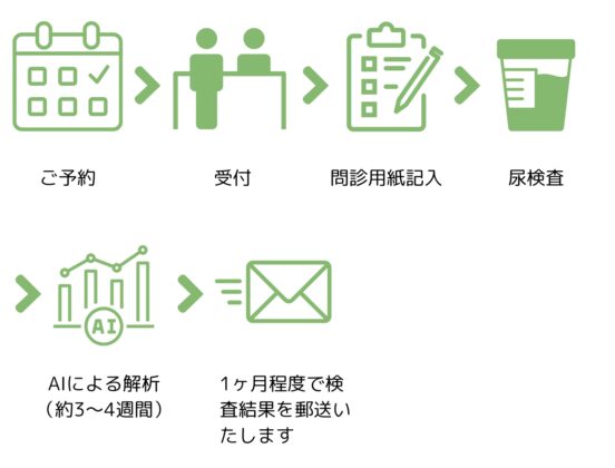 当日は、問診票の記入と尿の提出だけで完了するシンプルな流れです。