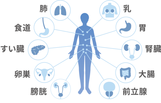 男性 | 前立腺がん | 胃がん/肺がん/大腸がん/膵臓がん/腎臓がん/膀胱がん/食道がん |