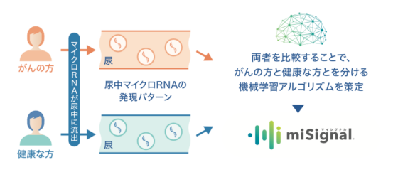 miSignalは、尿中の「マイクロRNA」をAIで解析し、がんのリスクを評価する検査です。