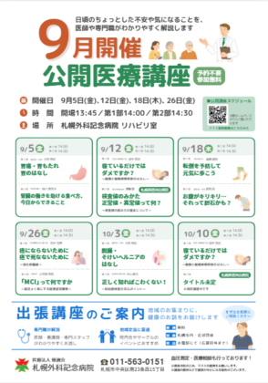 参加をご予定いただいていた皆さまにはご迷惑をおかけし、心よりお詫び申し上げます。振替開催が決まり次第、当院ホームページ等でご案内いたします。お問合せ:011-563-0151(広報)